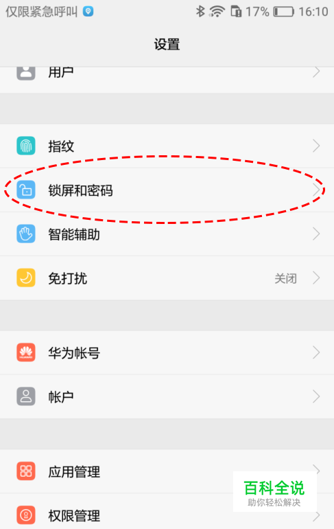 在系统设置界面选择【锁屏和密码】系统设置,进入锁屏和密码界面。