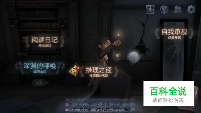 打开第五人格游戏界面。 侦探提着灯正凝神细视周围的一切,看穿深邃与暗影,朦胧灯火中寻求真理缥缈的存在。
