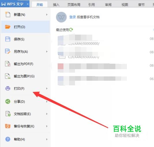 进入之后,点击“WPS文字”,然后选择“打印”,如图所示。