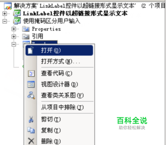 找到刚刚新建的项目,打开form窗体,可以双击左键打开,也可以右键选择打开。