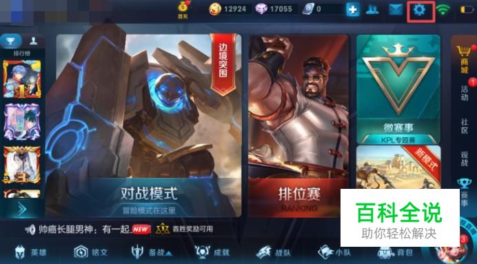 首先,我们打开我们手机上的王者荣耀,然后我们登录进入,进入游戏后,我们点击右上角的设置;