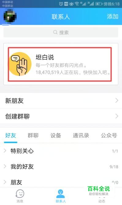 首先,我们登陆我们的手机QQ,然后我们点击坦白说;