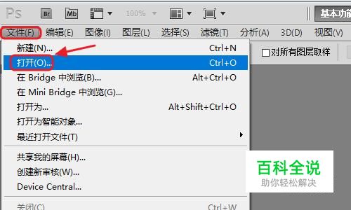 这种方法需要借助Photoshop软件,也就是平时大家俗称的PS,打开PS软件以后,我们点击“文件”-“打开”,然后将GIF图片素材添加进来,如图二;