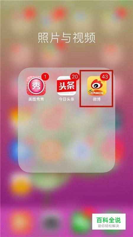 首先在我们的手机桌面上找到微博并点击它,如下图所示。