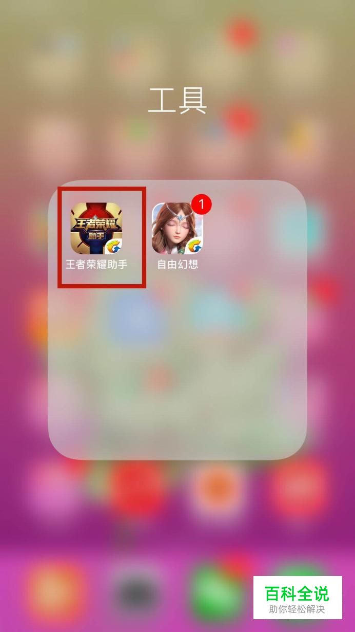 首先在我们的手机桌面上找到王者荣耀助手并点击它,如下图所示。