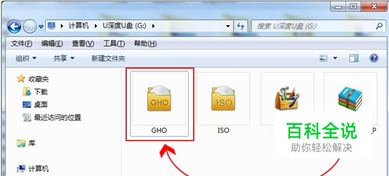 第一步:ghost win8系统镜像文件下载存放位置 首先,将我们所下载好的ghost win8系统镜像文件放入到所制作好的u深度u盘启动盘中,根据如下图的指引放入指定的文件夹当中。