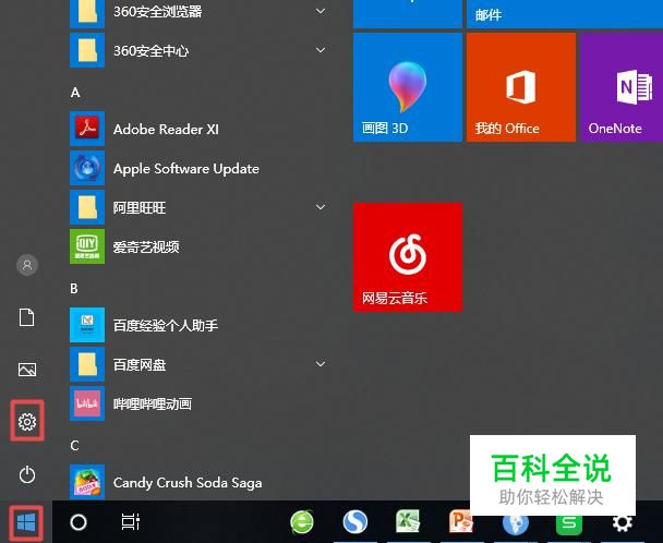 首先,我们点击电脑左下角的微软按钮,弹出的界面,我们点击设置;
