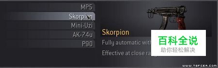 捷克的Skorpion VZ61是俄系装备中比较常见的微型冲锋枪,由于对于此枪知之甚少,而且中文资料也比较有限,所以这里就不详细介绍了。 在COD4中,相比MP5,此枪射速要快很多,威力也小很多。精准度也一般。