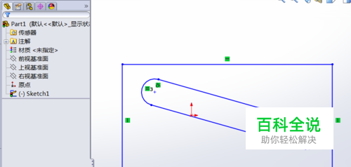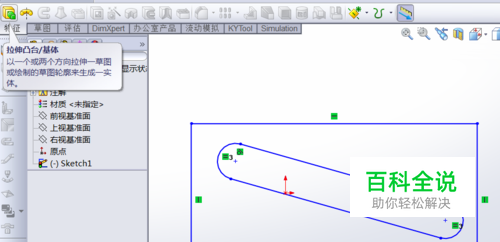 在特征树中点中这个草图。并再次选取一个特征进行操作。 这里我们仍然选择拉伸操作。