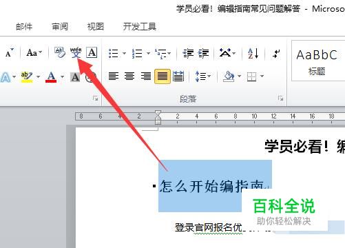 进入之后,选择想要加注拼音的文字,然后点击图示位置按键,如图所示。