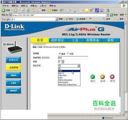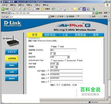 使用无线路由器组建无线局域网后,默认情况下有效范围内的无线网络用户都可以连接到无线网络中,用户可以通过在无线路由器中设置无线网络密码限制无线用户连接到无线网络。以D-Lin的DI-624+A为例,设置无线网络密码的步骤如下所述: