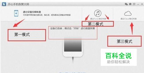 1.在电脑上下载安装运行开心手机恢复大师。手机连接电脑,选择第一个模式。