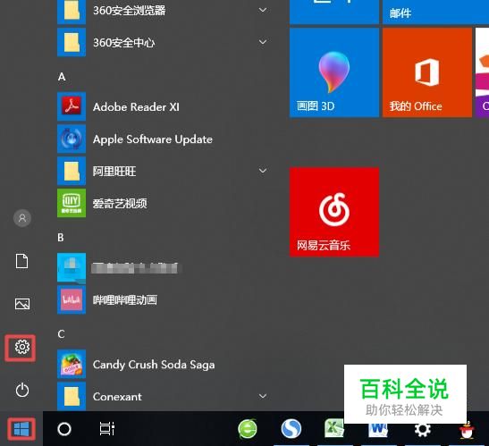 首先,我们点击电脑桌面左下角的微软按钮,弹出的界面,我们点击设置;