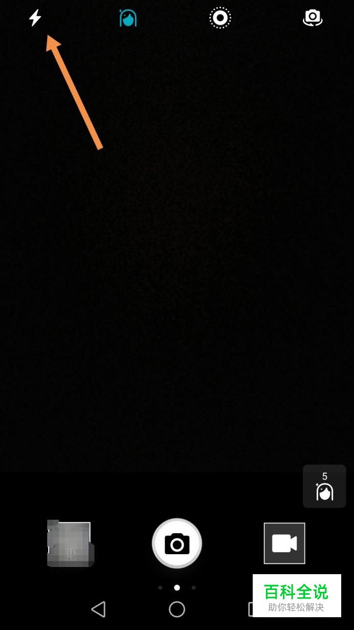 然后就进入手机拍照界面,这时左上角有一个闪电形状的符号,这就是闪光灯,如下图。