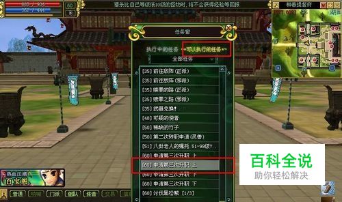 如果忘记了去哪里领取任务,可以点击任务菜单,打开任务窗口,在"可以执行的任务"中查看,3转任务为"[60]申请第三次升职 上"