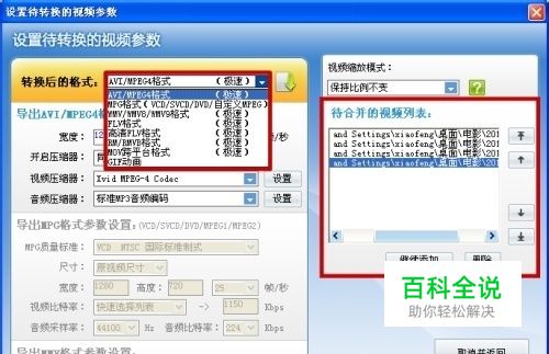 选择导出的视频格式并灵活设置视频质量参数。 视频文件导入后,我们会在下图右侧的红色选框处看到导入的视频文件,还可以灵活地调整合并的顺序呢~ 我们在左侧的红色选框处,可以选择自己需要导出的视频格式。如果要将编辑好的视频文件上传到网上,建议你将导出格式选择为体积小而且画面清晰的FLV格式。同时,还可以灵活地设置导出视频文件的质量参数~