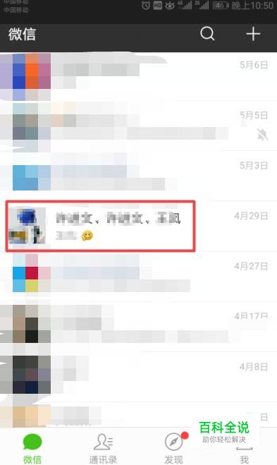 首先,我们打开我们的微信,然后我们点击一个群聊;