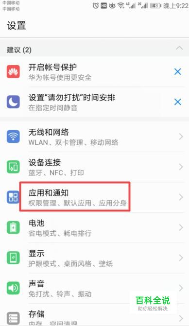 弹出的界面,我们点击应用和通知;