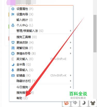 找到之后,右击一下输入法,选择“帮助”,进入下一页面,如图所示。