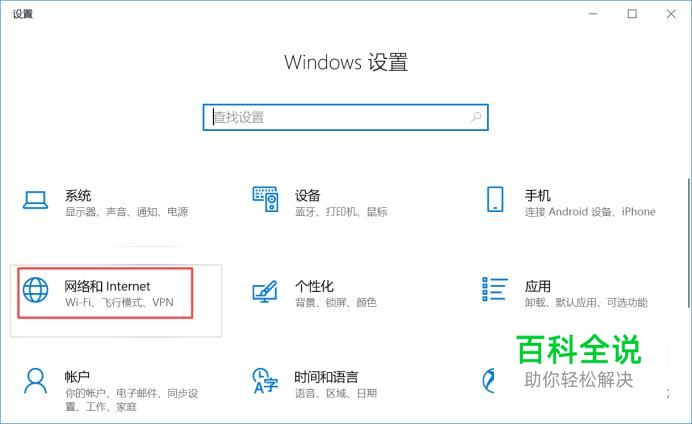 弹出的界面,我们点击网络和Internet;