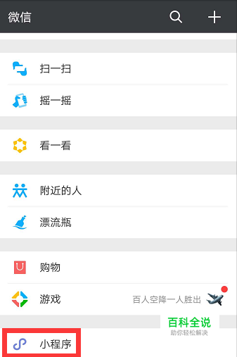 登录微信,点击【发现】→【小程序】。