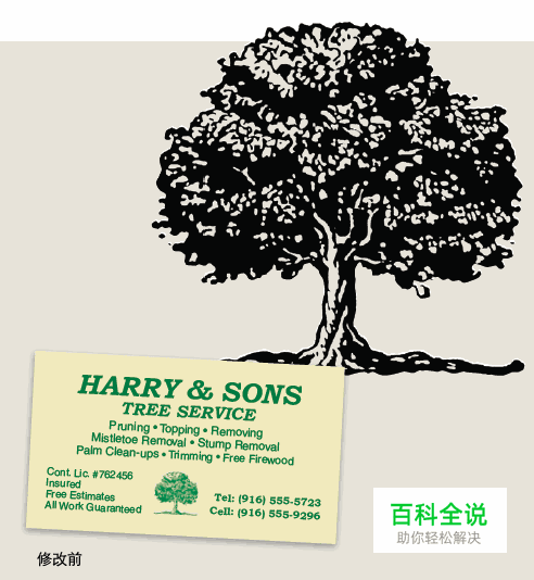 要确保字体与图像和谐一致,关键是要找出两者的共同点。 你手头上已经有一张你想要的图片了,而你需要找一种字体与它搭配,你如何选择? 我们会认为文字的作用就是用来阅读,但事实上字体其实也是一种艺术作品,不同的字体——实际上就是不同的图片,能够传达不同的语气及含义。所以我们可以看到销售的字体一点都不便宜。当文字作为印刷品时,不同的字体传达了活泼、庄重或商业等不同的气息,这些不同是由字体的结构所决定的。 关键的问题就是要如何选择字体,因为只有当图片与字体传达的是同一种“声调”,两者在一起时才会感觉到和谐,并且力量也得到加强。 在本文中,我们将会探讨这一点,我们在本文介绍的 Harry & Sons 公司,其业务是树木护理、修剪等——已经有了一张他们满意的图片,是一张稠密的树木图片。他们需要寻找一种能够与这棵树搭配的字体来设计公司的名片。