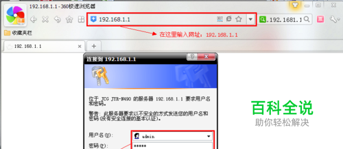 步骤二:进入下级路由器的设置界面 硬件连接好之后,打开浏览器,并在浏览器里输入网址:192.168.1.1 在弹出的用户名和密码框这里输入、 用户名:admin 密码: admin 输入完成之后,点击“确定”,进入路由器的设置界面,如下图: