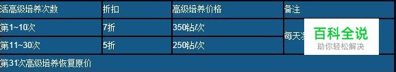 【活动时间】9月15日00:00~9月18日23:59 【活动范围】截止到9月6日(含6号)开服的大区均上此活动 【活动内容】活动期间,倾情回馈玩家,坐骑高级培养打折,玩家每天高级培养第1~10次7折,11~30次5折,第31次高级培养恢复原价。 【活动时间】9月15日00:00~9月18日23:59 【活动范围】截止到9月6日(含6号)开服的大区均上此活动 【活动内容】活动期间,倾情回馈玩家,坐骑高级培养打折,玩家每天高级培养第1~10次7折,11~30次5折,第31次高级培养恢复原价。