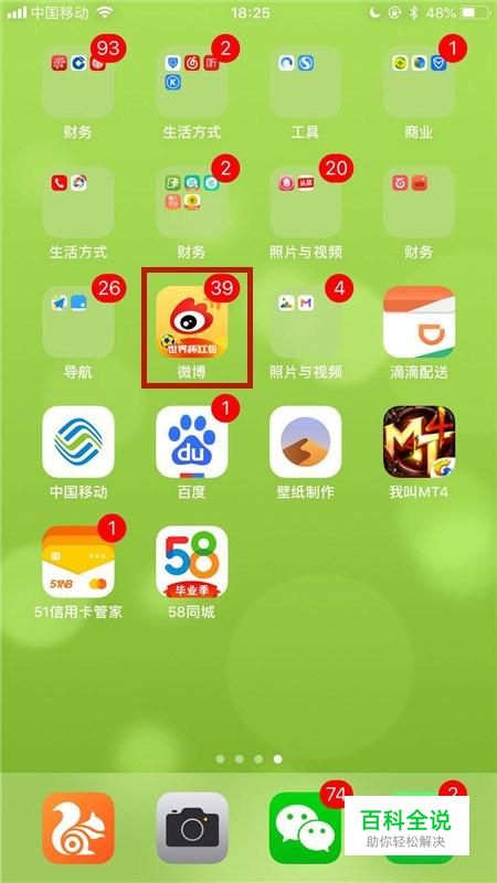 首先在我们的手机桌面上找到微博并点击它,如下图所示。