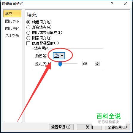 打开“设置背景格式”,将背景设置为黑色,如图所示。