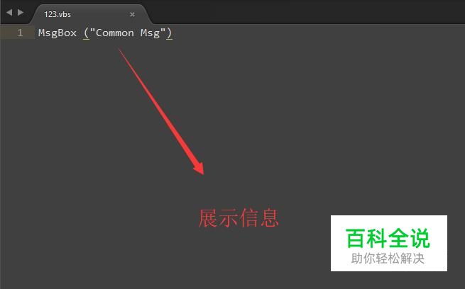 首先我们打开Sublime软件,新建一个vbs程序文件,然后在程序文件中输入最简单的MsgBox用法,如下图所示