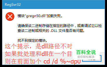 在注册用的批处理和dll在同一个目录的前提下,可以在前面加个 cd /d %~dp0 使用系统当前命令执行的位置先进入到批处理所在的路径,再执行就可以了。