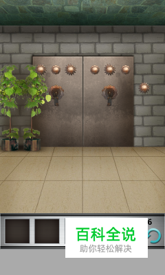 在第六关中,需要找到隐藏的机关才能打开电梯门。 在电梯门的两边有两盆盆景,点击右边的盆景把它移开,一开后可以看到盆景后面的墙上有个机关按钮。