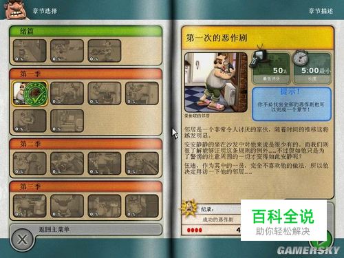 3、生日惊喜 6个恶搞镜头 道具:强力老鼠夹子、鸡蛋、炮竹、肥皂、厕纸、签字笔、 顺序:因为只要不让老头子的手指被老鼠夹子夹到就不会跑到厕所,所以我们可以先签字笔+画像、厕纸+马桶——肥皂+厕所地板——然后悄悄的在2楼客厅通往厨房的门口前等待老头子下楼查礼物鞭炮+蜡烛包——取出鸡蛋+微波炉(只要手够快完全可以做到)然后另一楼梯下楼,在信箱里安放老鼠夹子。而后就是在跑向厕所的途中发现画像被修改,进到卫生间内踩到肥皂摔倒、回头看马桶又被搞脏。