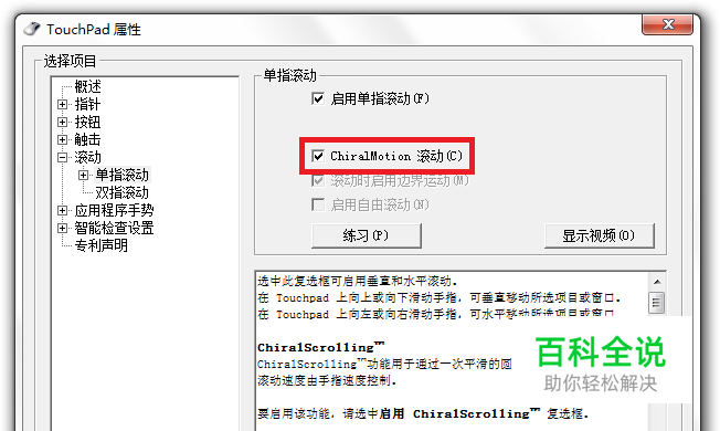 Synaptics的最新驱动程序已经修正。 用户下载(我用的是驱动人生)最新驱动并安装,然后到在控制面板进行滑轮的设置,重启机器。这样再也不会恢复默认值了。 当然,不更新驱动也可解决。 打开新思Synaptics触摸板设置,在“单指滚动”中,去掉“ChiralMotion”前的勾。