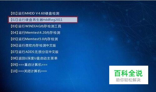 选择【02】运行硬盘再生器HddReg2011,按回车键进入,如下图所示: