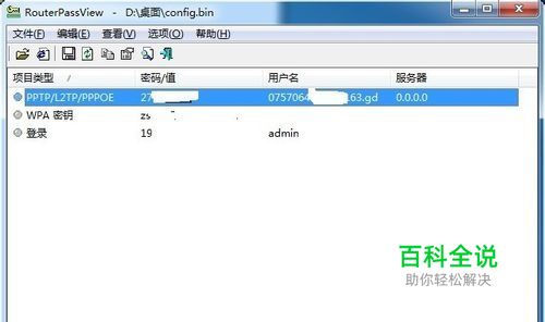 打开RouterPassView,打开路由器设置文件.很快你就可以看到你的ADSL拨号密码了.