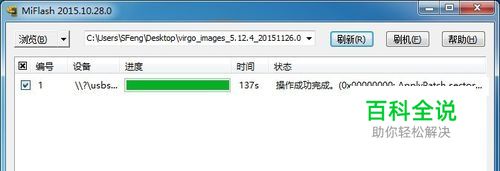 启动MIflash选择 小米Note的线刷包刷机,等待进度条走完并提示操作成功完成
