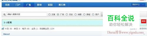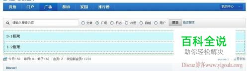 首先,我们登录我们的论坛,打开首页右上角的DIY面板,拉一个3:1的框架到头部的导航下方