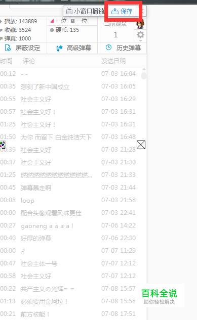 鼠标移到视频画面,在原来“小窗口播放”的地方等待,知道出现“保存”一栏。