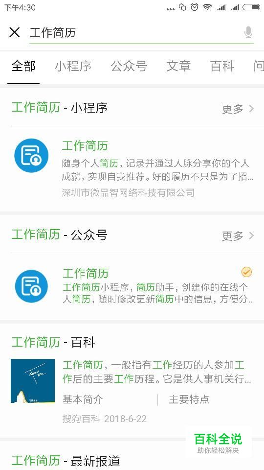首先我们在搜索中搜索“工作简历”,这是一个小程序,在小程序中填写简历非常方便,而且是免费的哦!