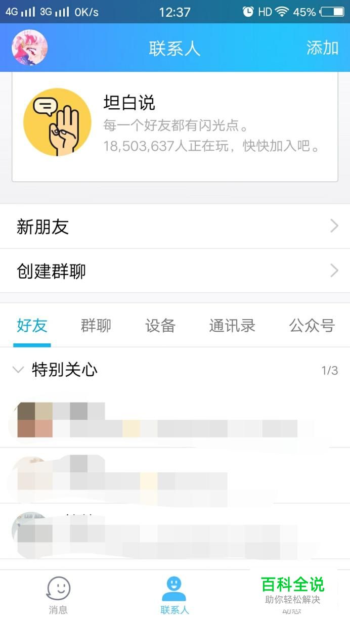 打开手机QQ,将好友设为“特别关心”。