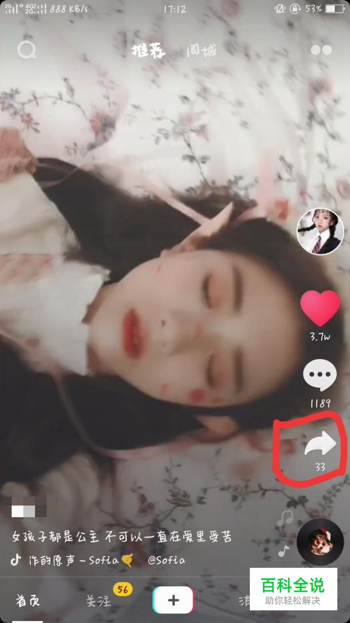 选择想要设置为动态壁纸的短视频,点击其右侧的转发。