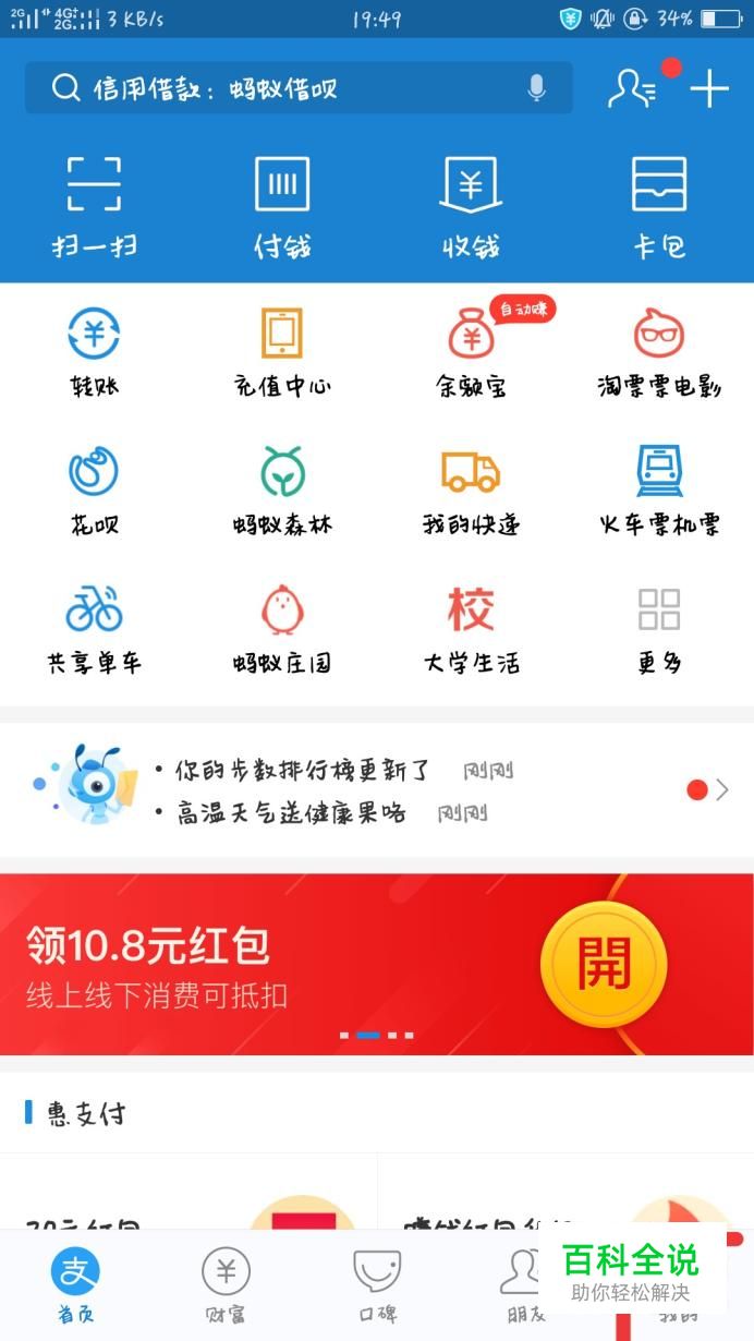 进入支付宝后,点击首页顶部的“我的”,进入个人中心。