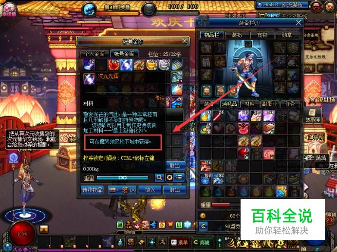 可以看到物品简介里面提到可以在魔界区域获得该物品,事实上,也只有魔界区域地下城才能爆出次元光辉。