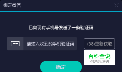 点击绑定之后,我们先前用来登录的手机号会收到一条验证码短信,输入验证码,点击确定。