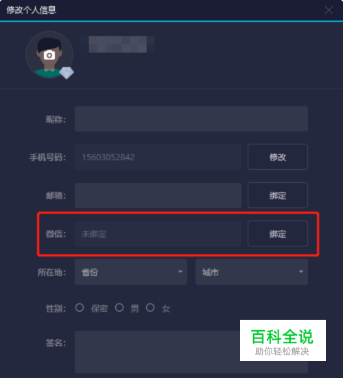 界面打开之后,点击中间微信一栏右侧的绑定按钮。