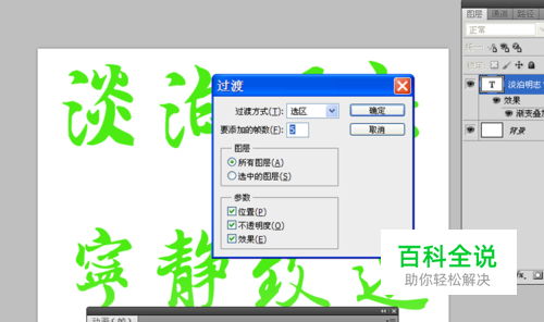 选择这两帧,点击过渡命令,在弹出的对话框中设置要添加的帧数为5,点击确定按钮。