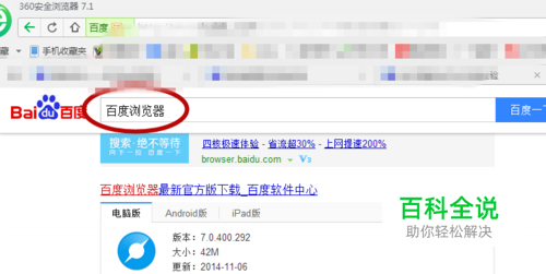 在百度首页搜索”百度浏览器“,下载官方版本