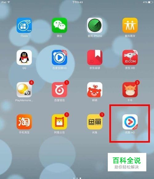 在iPad上运行优酷视频,如图所示,点击优酷APP。